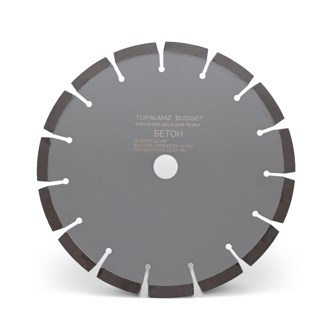Главная / Интернет-магазин / Расходные материалы / Оснастка для шлифашин по бетону / Диск алмазный отрезной для бетона TOPALMAZ BUDGET, диаметр 230 мм, посадочное 22,23 мм, высота сегмента 10 мм