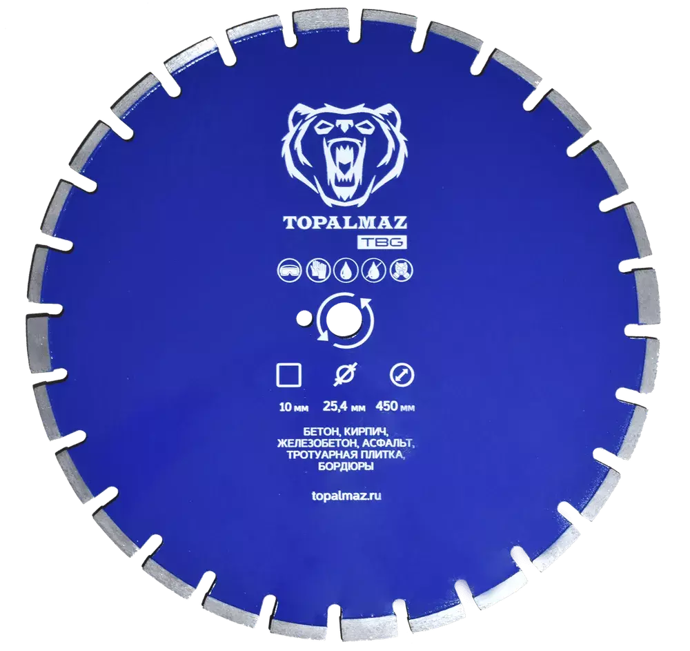 Диск алмазный отрезной для бетона TOPALMAZ, диаметр 450мм, посадочное 25,4мм, высота сегмента 10 мм